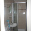 Eigen keurig betegelde douche/wc combinatie met vaste wastafel, toilet en douchecabine.