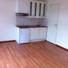 Woonkamer ( circa 15 m2) heeft een open keuken met rvs spoelbak, keukenkasten, kookplaat, afzuigkap en koelkast.