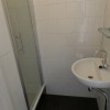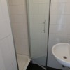Eigen keurige betegelde badkamer met douchecabine, toilet en vaste wastafel.