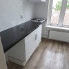 Trap naar de 2e etage, hal, woonkamer met moderne, ruime keuken voorzien van rvs spoelbak, koelkast, kookplaat en afzuigkap. etc. 2 slaapkamers.